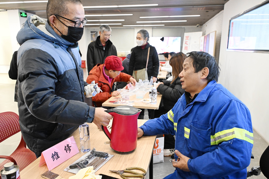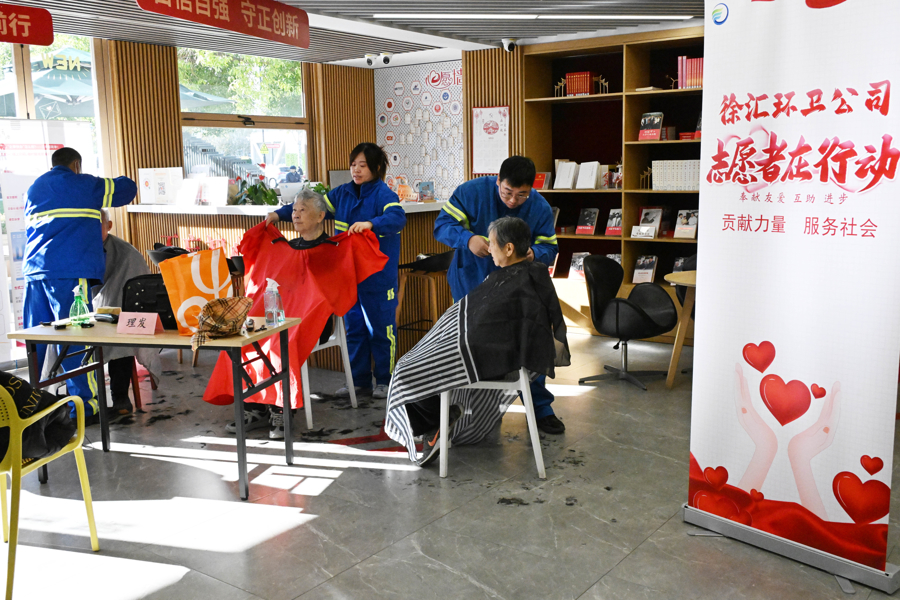 活动当天,长桥街道党群服务中心一楼设志愿服务专区,将志愿精神转化为便民服务,成为徐汇环卫与街镇融合的生动体现。专区内,手工编织摊位为居民制作挂饰,理发摊位为社区居民修剪发型,“小修小补”服务修理雨伞、小家电等,居民按需参与、满意而归。